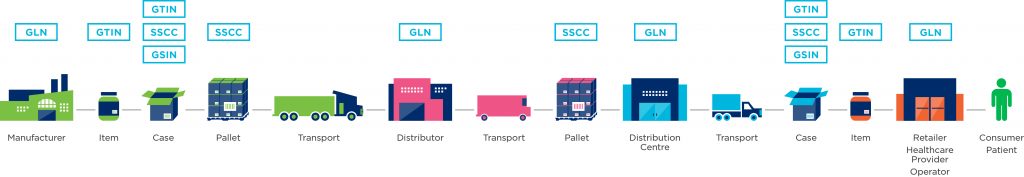 - Visos fizinės vietos visoje tiekimo grandinėje turi būti identifikuotos atitinkamais GS1 identifikatoriais.